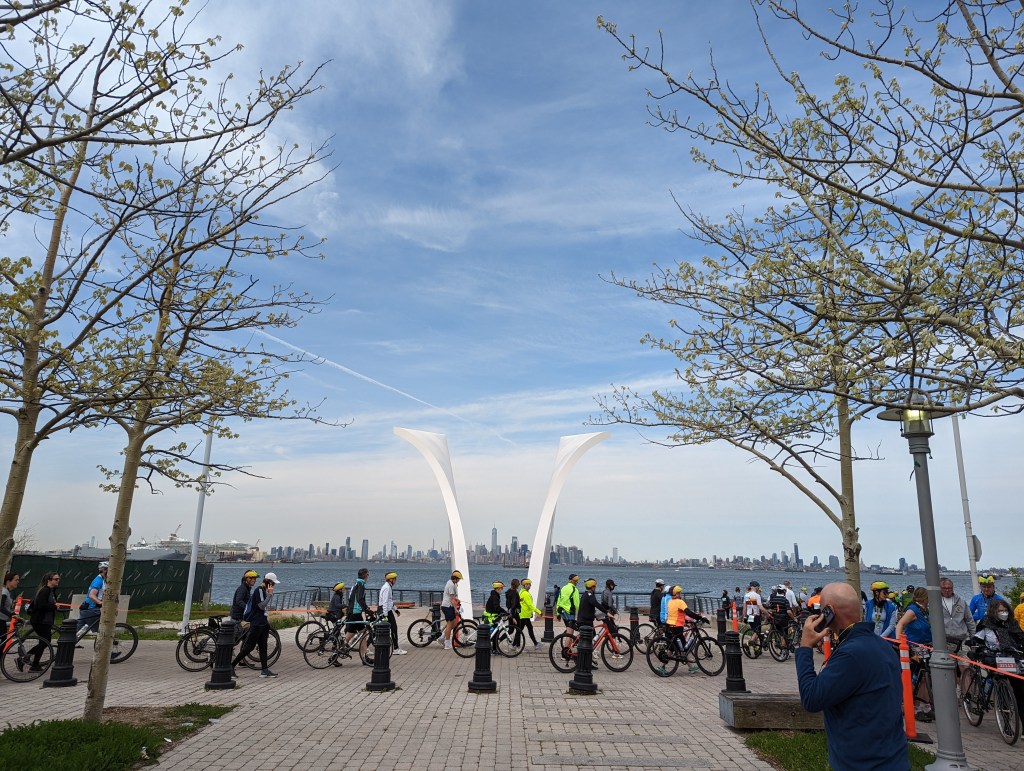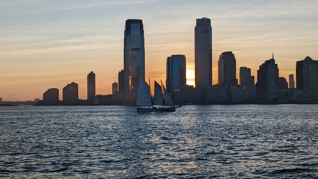 Mientras hacíamos cola para embarcar en estos emblemáticos barcos naranja, pude capturar esta imagen del World Trade Center enmarcado por el monumento denominado Postcards, diseñado por Santiago Calatrava en memoria de las víctimas del 11 de septiembre de 2001.