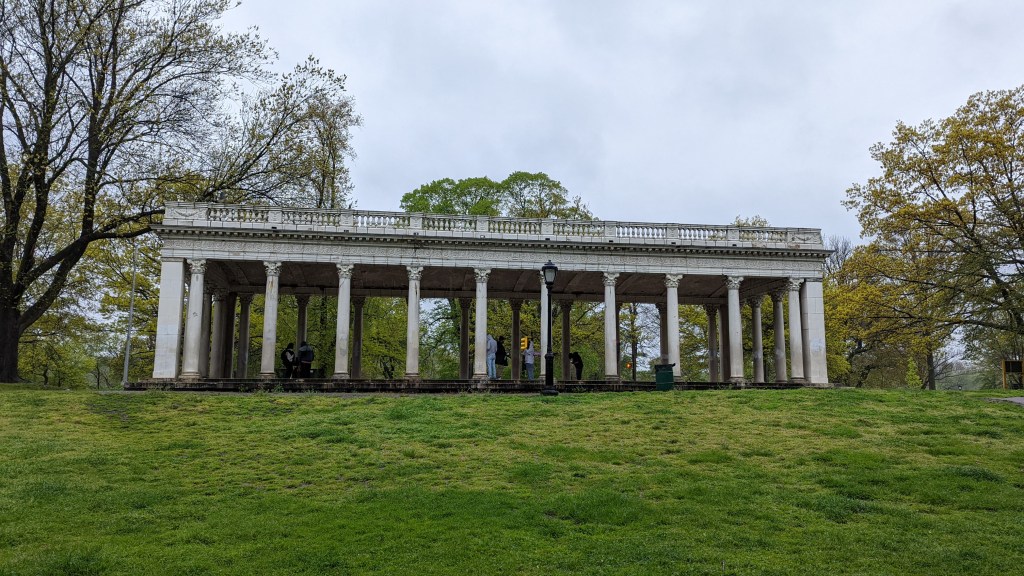 En el ultimo podcast hablábamos de los turbios avatares de la vida y muerte del arquitecto Stanford White. En 1905, diseñaría como pieza ornamental para Prospect Park, Brooklyn, el llamado Prospect Park Peristyle o Grecian Shelter, un pequeño espacio neoclásico que sirve de refugio al visitante ante el sol y la lluvia o para reunirse ante cualquier necesidad social.