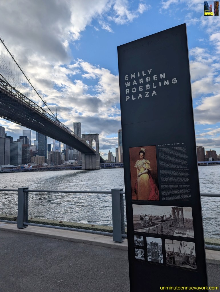 El el podcast titulado «Brooklyn Bridge o la saga familiar que unió a dos ciudades» contamos la historia de la construcción de este puente que supuso el empeño de una familia en completar la empresa, y finalmente como Emily Warren Roebling asumió la dirección para finalizarlo cuando su esposo, Washington Roebling, el ingeniero jefe, quedó incapacitado por caisson disease, enfermedad provocada por la descompresión sufrida al bajar a los cajones de cimentación del puente, Emily asumió la responsabilidad de supervisar su construcción.